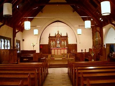 The first photo shows the main section of the church, as a parishioner would see it on Sunday morning. The main altar is at the far end of the picture and the organ is on the left side (pulpit side) of the choir area. The Lady Chapel is on the far right of the picture.
