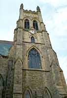 However, the clock was installed and was faithfully on time, losing exactly 6 seconds per year. In an era when the wrist watch had not been invented, and pocket watches more inaccessible under winter apparel, the public clock was of great service to people. The clock was, at that time, illuminated with a 32 to 50 watt candle lamp on each dial. The dials were five feet in diameter and of the best opal glass. It was ordered in 1899 at a cost of 255 pounds sterling. It arrived a year later. It chimes the quarter hours and never less than twice, sometimes more, during sermons at some point! Today, the chimes still ring, but not the carillon. They also ring 20 minutes before both Sunday services. The carillon can be played manually from a small keyboard inside the church itself. |