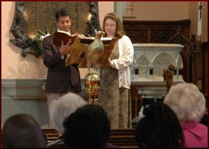 reading a lesson at our Sunday Eucharist on January 23rd, 2005. |