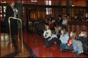 The typical 10:30 Sunday service starts with a childrens' address where the Rector or one of our lay readers addresses our children. Here an address given by Barbara Hill-Bissonnette. |